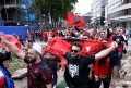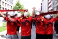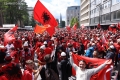 FANS BEFORE THE MATCH - Fans of the Albanian national football team singing in the streets of Dortmund before the football match between the Albanian national football team and the Italian national football team at the Westfalenstadion stadium, as part of the group stage for EURO 2024 in Germany. This is the second time that the Albanian national team takes part in a European championship.