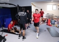 The players of the Albanian national team, Ardian Ismajli, Taulant Seferi and Berat Gjimshiti, training in the gym two days before the match between the Albanian national team and the Croatian national football team, in the framework of the group stage of EURO 2024.