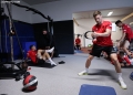 The players of the Albanian national team, Etrit Berisha, Ernest Muci, Marash Kumbulla and Elhan Kastrati training in the gym two days before the match between the Albanian national team and the Croatian national football team, in the framework of the group stage of EURO 2024.