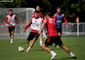 The players of the Albanian national football team during a training session at the Sportanlage SuS Kaiserau stadium before the match between the Albanian national team and the Croatian national football team, in the framework of the group stage of EURO 2024.