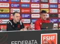 The head of the PR department in the AFF, Fatjon Kodra and the player of the Albanian national football team, Rey Manaj speaking during a press conference before the last match of the Albanian national team with the Spanish national football team, in the framework of the group stage of EURO 2024.