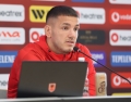 The player of the Albanian national football team, Rey Manaj speaking during a press conference before the last match of the Albanian national team with the Spanish national football team, in the framework of the group stage of EURO 2024.