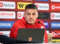 REY MANAJ IN THE CONFERENCE - The player of the Albanian national football team, Rey Manaj speaking during a press conference before the last match of the Albanian national team with the Spanish national football team, in the framework of the group stage of EURO 2024.
