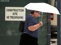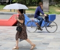 Citizen using an umbrella to fight the sun's rays in Skanderbeg Square. Albania is affected by a heat wave, with temperatures reaching around 38 degrees Celsius.