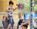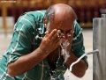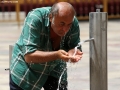 A citizen cooling off in one of the fountains near Skanderbeg Square. Albania is affected by a heat wave, with temperatures reaching around 38 degrees Celsius.