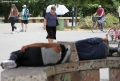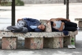 Citizens lying in the shade on a stone bench in Skanderbeg Square. Albania is affected by a heat wave, with temperatures reaching around 38 degrees Celsius.