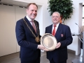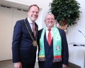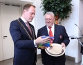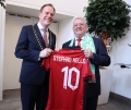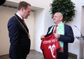 The Mayor of Dusseldorf, Stephen Keller, and the president of the FA, Armand Duka, during a reception ceremony at Dusseldorf Municipality for the representatives of the Albanian and Spanish Federations, before the last match of group B of EURO 2024, between Albanian and Spain.
