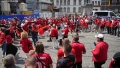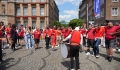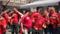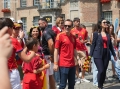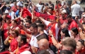 Albanian fans singing and dancing in the city square in Dusseldorf before the match between the Albanian national football team and the Spanish national football team, as part of the group stage in EURO 2024.