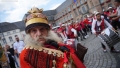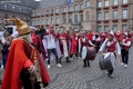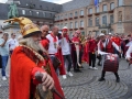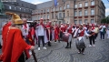 An Albanian fan dressed as Gjergj Kastriot Skanderbeg and other fans dancing and singings in the city square in Dusseldorf before the match between the Albanian national football team and the Spanish national football team, as part of the group stage in EURO 2024.