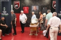 The members of the executive committee of the AFL, Lutfi Nuriu, Arben Dervishaj, Anila Basha, Abdyl Kuriu, Envi Hicka and the General Secretary of the AFL, Ilir Shulku during the homage ceremony for the former footballer of the Albanian national team, Bejkush Birce in the premises of the Air Albania stadium in Tirana.