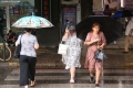 Citizens walking with an umbrella on a rainy day in the vicinity of the center of Tirana. Most of Albania is affected by bad and unstable weather and rainfall.