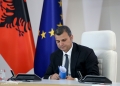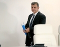 Governor of the Bank of Albania, Gent Sejko entering a press conference. Sejko stated that the financial markets have been calm and the monetary policy followed by BA has had a positive impact
