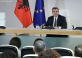 Governor of the Bank of Albania, Gent Sejko speaking at a press conference. Sejko stated that the financial markets have been calm and the monetary policy followed by BA has had a positive impact