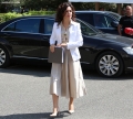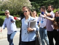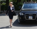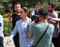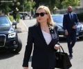 Minister of tourism and environment, Mirela Kumbaro entering the premises of the parliament for a parliamentary session.
