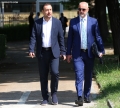 MP Klevis Xhoxhi and Bardhyl Kollcaku entering the premises of the parliament for a parliamentary session.