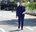 MP Helidon Bushati entering the premises of the parliament for a parliamentary session.