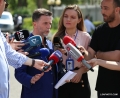MINISTERS AND MPS OUTSIDE THE PARLIAMENT - The Minister of Agriculture and Rural Development, Anila Denaj and the MP Bora Muzhaqi entering the premises of the parliament for a parliamentary session.