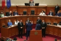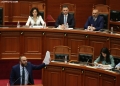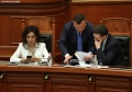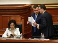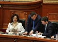Ministers Elisa Spiropali, Ervin Mete and Tualant Balla during a parliamentary session. During the session, three draft resolutions, six draft laws and a draft decision were approved