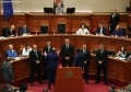 State Commissioner of Elections, Ilirjan Celibashi during a parliamentary session. During the session, three draft resolutions, six draft laws and a draft decision were approved