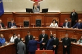 PARLIAMENTARY SESSION - MP block the floor during a moment of tension during a parliamentary session. During the session, three draft resolutions, six draft laws and a draft decision were approved
