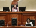 Deputy speaker of parliament, Ermonela Felaj during a parliamentary session. During the session, three draft resolutions, six draft laws and a draft decision were approved