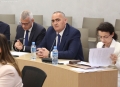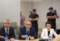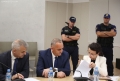 Lawyer Klodiana Gjyzari, Fredi Beleri and Vangjel Dule during a CEC session regarding the validity of his mandate as the elected mayor of Himara. During the session, Beler's mandate was declared invalid and new elections will be held in Himara.