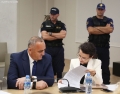 Lawyer Klodiana Gjyzari and Fredi Beleri during a CEC session regarding the validity of his mandate as the elected mayor of Himara. During the session, Beler's mandate was declared invalid and new elections will be held in Himara.