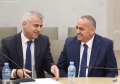 Fredi Beleri and Vangjel Dule during a CEC session regarding the validity of his mandate as the elected mayor of Himara. During the session, Beler's mandate was declared invalid and new elections will be held in Himara.