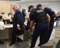 BELERI AT CEC - Police officers accompanying Fredi Beleri after a session of CEC regarding the validity of his mandate as the elected mayor of Himara. During the session, Beler's mandate was declared invalid and new elections will be held in Himara.