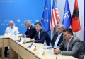 Vangjel Dule, Flamur Noka, Agron Duka and Fatmir Mediu during a meeting of these parties at the headquarters of the democratic party. During the meeting, the coordination of actions against the government and the protest of the 11th was discussed.