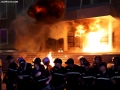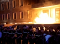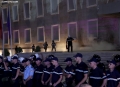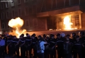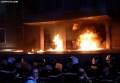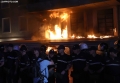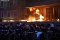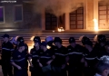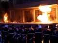 Police forces stand in front of the prime minister's office in Tirana, while a molotov bar explodes behind them, during a protest called by the opposition. The protest was announced a few weeks ago, when the Court of Appeal gave the DP stamp to former Prime Minister Sali Berisha. The goal of the opposition for this protest is the creation of a technical government.