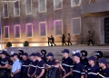 OPPOSITION PROTEST - Police forces stand in front of the prime minister's office in Tirana, while a molotov bar explodes behind them, during a protest called by the opposition. The protest was announced a few weeks ago, when the Court of Appeal gave the DP stamp to former Prime Minister Sali Berisha. The goal of the opposition for this protest is the creation of a technical government.