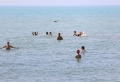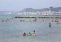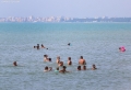 Citizens bathing in the sea near the beach of Mali i Robi. The high summer temperatures, which have reached up to 38 degrees, have made many tourists go to the swimming pools and the seashore to escape the heat.