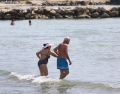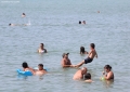 BEACH AT MALI I ROBIT - Citizens bathing in the sea near the beach of Mali i Robi. The high summer temperatures, which have reached up to 38 degrees, have made many tourists go to the swimming pools and the seashore to escape the heat.