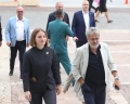Ulsi Manja dhe kryetari i bashkise se Lezhes, Pjerin Ndreu duke hyre ne ambientet e Pallatit te Kongreseve ne Tirane, para Asamblese se Partise Socialiste. Gjate asamblese u prezantua ministrat e rinj si dhe propozimet per kryetar parlamenti (Niko Peleshi).