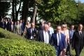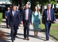 Deputetet Flamur Noka, Gazment Bardhi, Agron Gjekrmarkaj dhe Elda Hoti duke hyre ne ambientet e parlamentit per seancen e pare te legjislatures se re.