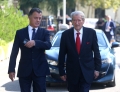 Deputetet Arjan Ndoja dhe Belind Kellici duke hyre ne ambientet e parlamentit per seancen e pare te legjislatures se re.