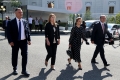 SEANCA E PARE E LEGJISLATURES SE RE - Deputetet Flamur Noka, Gazment Bardhi, Agron Gjekrmarkaj dhe Elda Hoti duke hyre ne ambientet e parlamentit per seancen e pare te legjislatures se re.