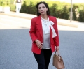 Ministrja e ekonomise dhe inovacionit, Delina Ibrahimaj duke hyre ne ambientet e parlamentit per seances e pasdites. Gjate seances do te votohet per kryetarin e parlamentit.
