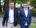 Ministri i Turizmit, Kultures dhe Sportit, Blendi Gonxhe dhe deputeti Damian Gjiknuri duke hyre ne ambientet e parlamentit per seances e pasdites. Gjate seances do te votohet per kryetarin e parlamentit.