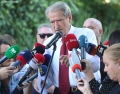 BERISHA NE SPAK - Kryetari i Partise Demokratike, Sali Berisha duke folur per gazetaret pas daljes nga ambientet e SPAK. Pas paraqitjes ne SPAK, Berisha ka sulmuar kreun i institucionit, Altin Dumanin.