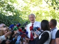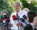 Kryetari i Partise Demokratike, Sali Berisha duke folur per gazetaret pas daljes nga ambientet e SPAK. Pas paraqitjes ne SPAK, Berisha ka sulmuar kreun i institucionit, Altin Dumanin.