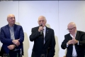 Drejtori i SIGAL, Avni Ponari dhe Aktori Reshat Arbana gjate nje ceremonie te organizuar me rastin e nderimit te aktorit nga Rotary Club Tirana, ne diten e 85 vjetorit te tij. Arbana ka marre nje certifikate mirenjoheje nga klubi.