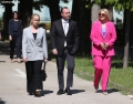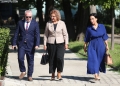 Deputetet Denisa Vata, Klevis Balliu dhe Ina Zhupa jashte ambienteve te parlamentit para nje seance.