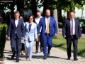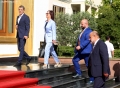 Deputetet Kastriot Piroli, Saimir Korreshi dhe Xhelal Mziu jashte ambienteve te parlamentit para nje seance.