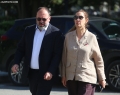 Deputeti Arbjan Mazniku dhe Ministrja e Arsimit dhe Sporteve, Mirela Kumbaro jashte ambienteve te parlamentit para nje seance.