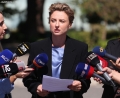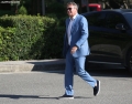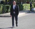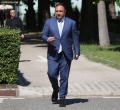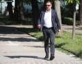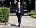 Deputeti Ervin Hoxha jashte ambienteve te parlamentit para nje seance.