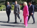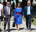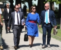 MINISTRA DHE DEPUTETE JASHTE PARLAMENTI - Deputeti Arbjan Mazniku dhe Ministrja e Arsimit dhe Sporteve, Mirela Kumbaro jashte ambienteve te parlamentit para nje seance.