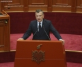 Kryetari i parlamentit, Niko Peleshi duke folur gjate nje seance parlamentare. Gjate seances, kane kaluar disa ndryshime per rendin e dites ndersa jane betuar 4 deputete dhe jane zgjedhur sekretaret e byrose se kuvendit.