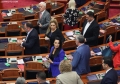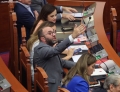 SEANCE PARLAMENTARE - Ministrat dhe deputetet e PS gjate nje momenti kur deputetet e opozites kane lene sallen gjate nje seance parlamentare. Gjate seances, kane kaluar disa ndryshime per rendin e dites ndersa jane betuar 4 deputete dhe jane zgjedhur sekretaret e byrose se kuvendit.